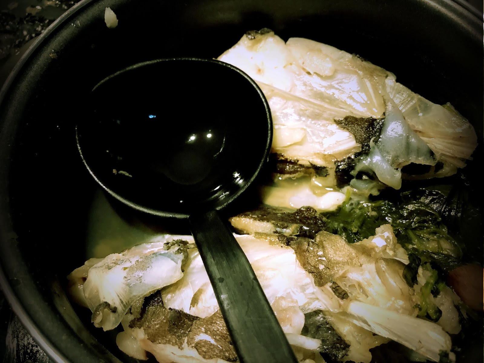 -Caldo para pescado (en este caso lo hago con espinas de bacalao y rape y unas verduras).